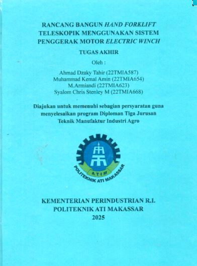 Rancang Bangun Hand Forklift Teleskopik Menggunakan Sistem Penggerak Motor Electric Winch : Tugas A....