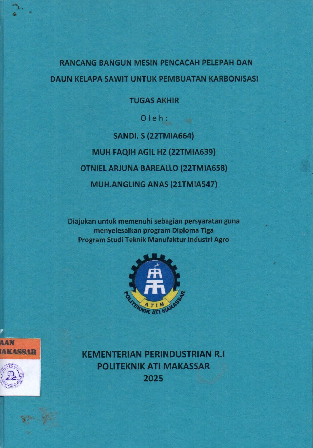 Rancang Bangun Mesin Pencacah Pelepah dan Daun Kelapa Sawit untuk Pembuatan Karbonisasi : Tugas Akh....