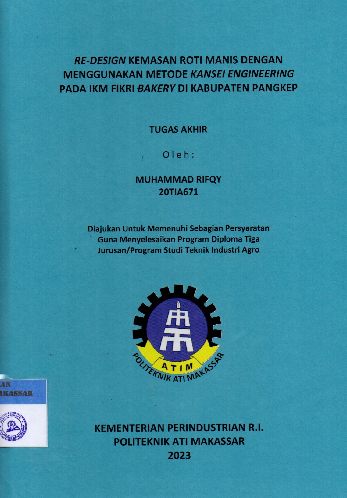 | Judul | Re-Design Kemasan Roti Manis Dengan Menggunakan Metode Kansei Engineering Pada IKM Fikri Bakery di Kabupaten Pangkep : Tugas Akhir / Muhammad Rifqy (20TIA671) |