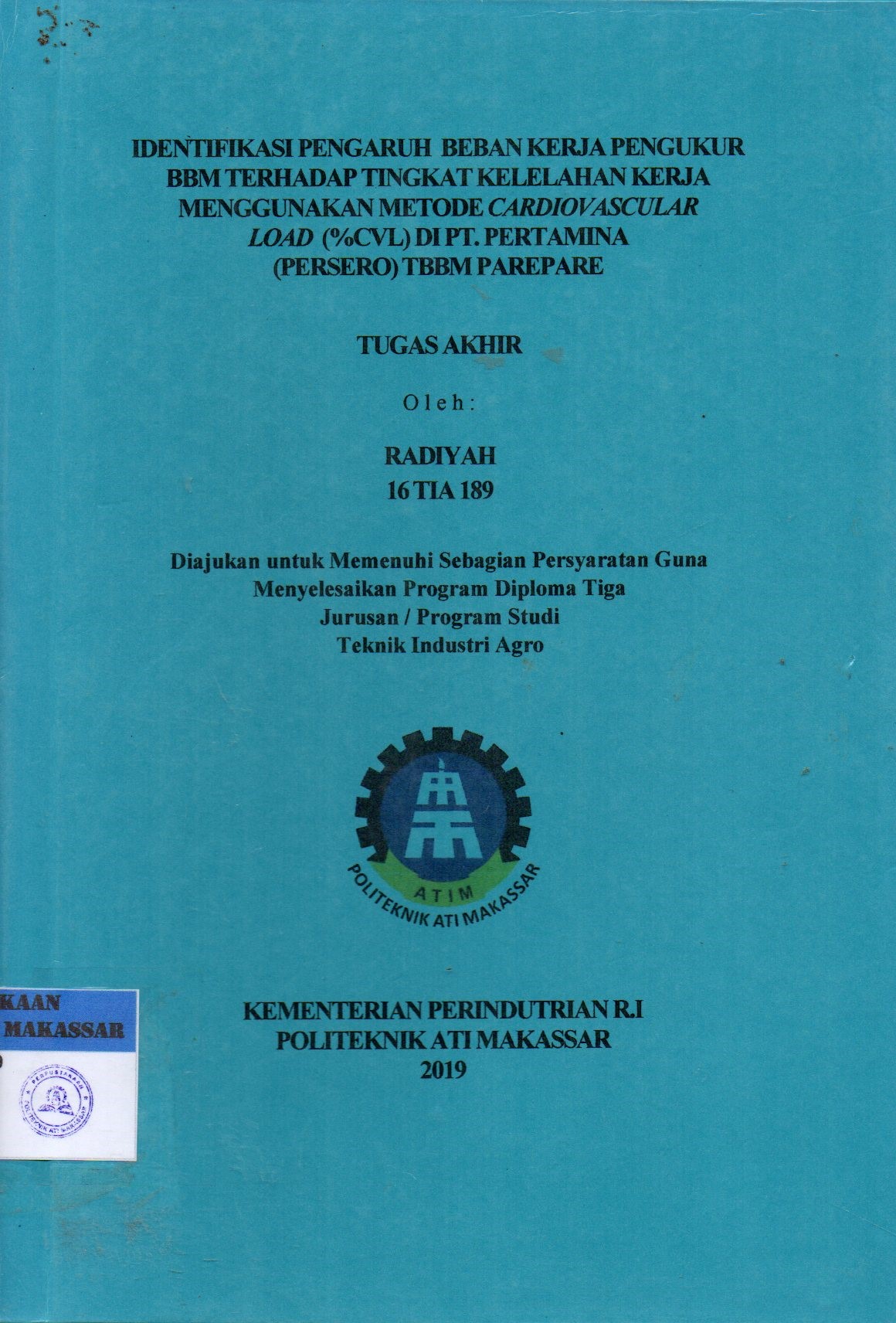 | Judul | Identifikasi Pengaruh Beban Kerja Pengukur BBM Terhadap Tingkat Kelelahan Kerja Menggunakan Metode Cardiovascular Load (%CVL) di PT. Pertamina (Persero) TBBM Parepare : Tugas Akhir / Radiyah (16TIA189); Widya Hastuti Afris; Andi Velahyati Baharuddin |